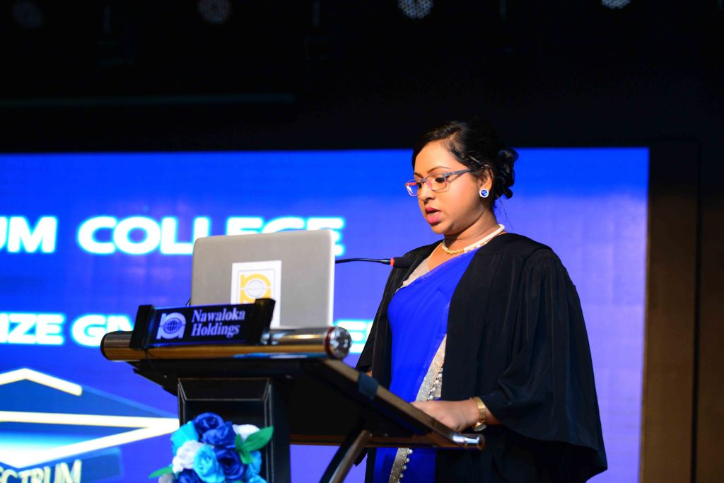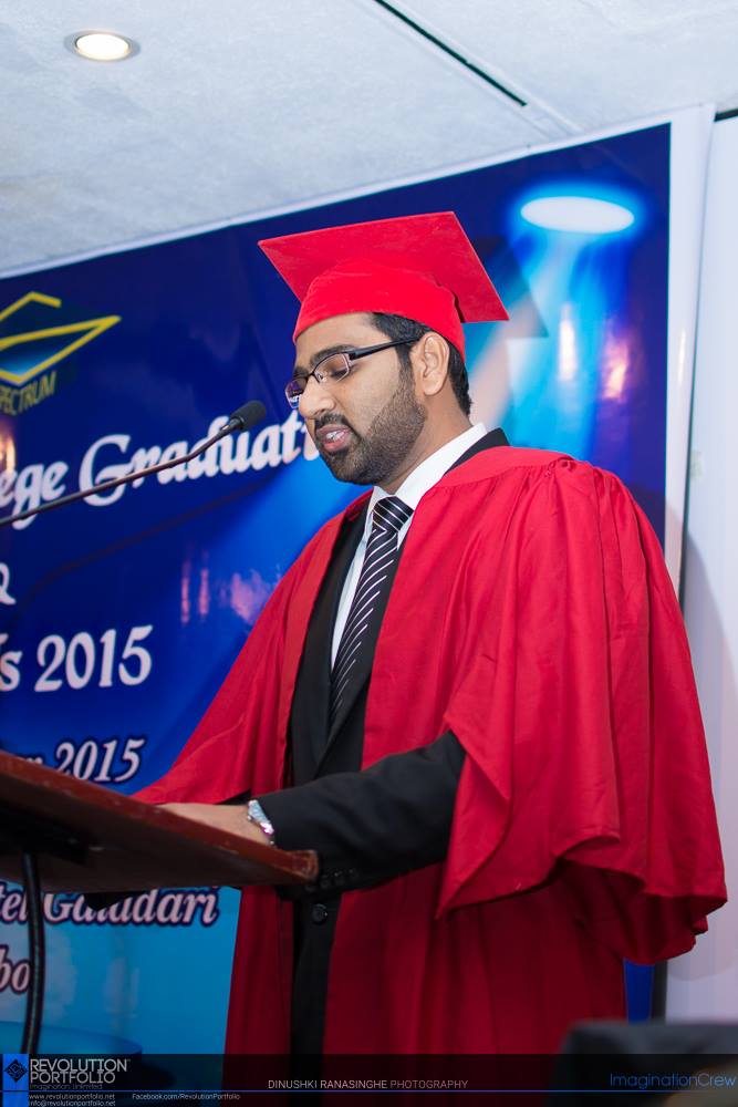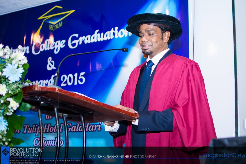 Spectrum College held its Inaugural Graduation & Awards 2015 on the 17 December 2015 at 5.pm at the Salon Tulip – Hotel Galadari, Colombo 1.The Chief Guest was the Secretary of the Embassy of the State of Kuwait in Sri Lanka Mr. Bader O.E.O. Alforaih who represented His Excellency Khalaf Bu Dhhair the Ambassador of the State of Kuwait in Sri Lanka. Mr. Anusha Samaranayaka the National Fast Bowling Coach of the Sri Lanka National Cricket Team and a former National Cricketer graced the occasion as the Guest of Honour whilst Mrs. Shirani Welgampola one of the famous educationists in the country was the guest speaker of the day.