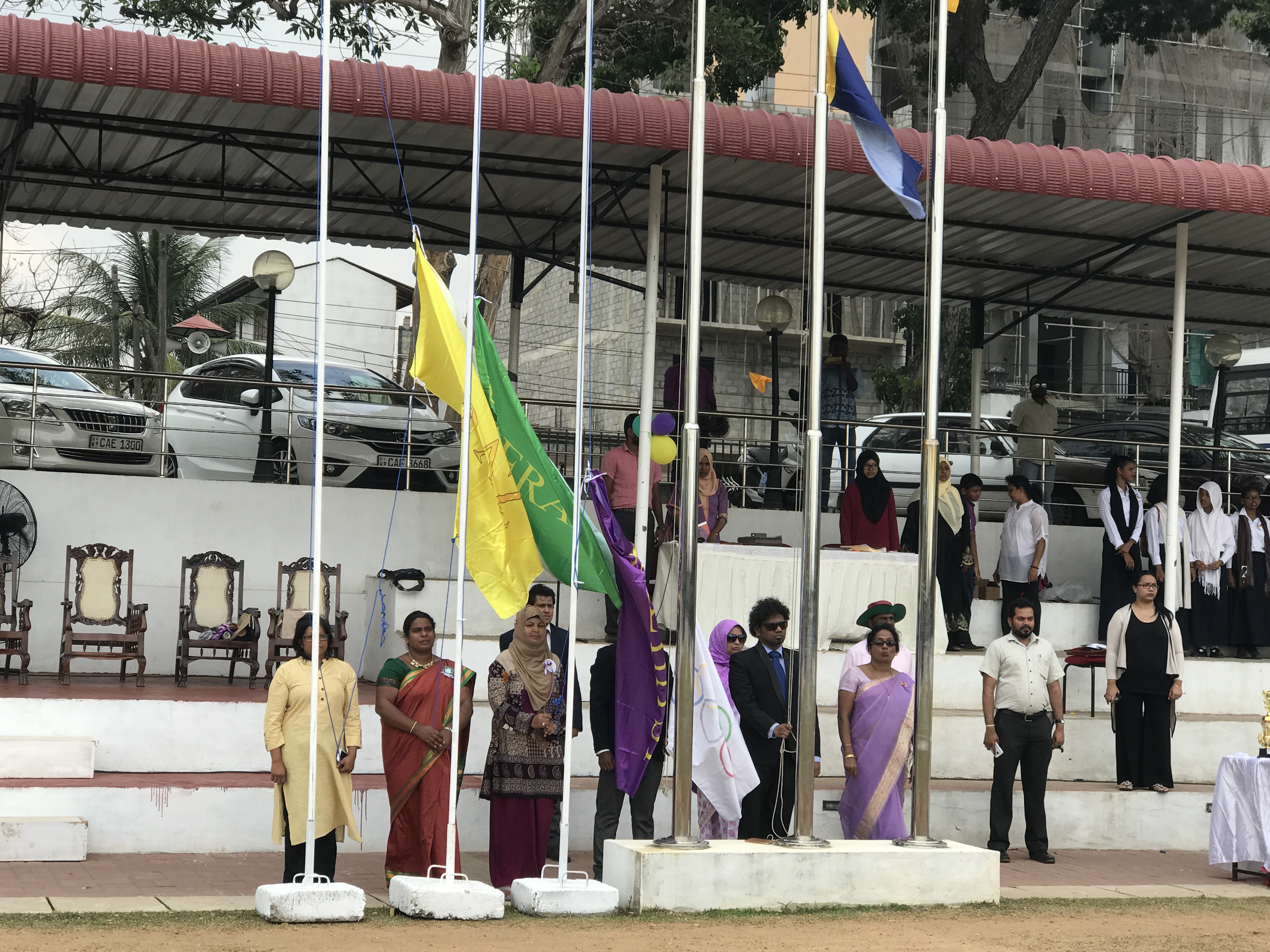 The Chief Guest for the opening ceremony was Mrs. Y. Mariyadas – the Colombo Zonal In-Service Advisor – Sports. At 1.00pm the sports meet started with the hoisting of flags by the guests and the officials. The National Flag of Sri Lanka was hoisted by the Chief Guest herself whilst the Chairman Dr. M. Sharfraz Azad hoisted the School Flag. Mr. Niroz – Sports Coordinator hoisted the Sports/Olympic flag. The house Mistresses Ms. Nisha, Ms. Dawson and Ms. Sudar hoisted the respective house flags of Amethyst, Emerald and Topaz Houses.