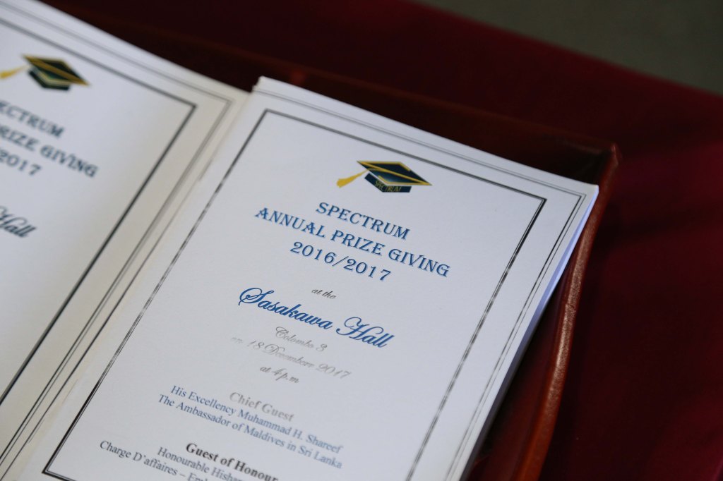 Spectrum College Boys’ School held its Annual Prize Giving for the academic year 2016/2017 on 18 December at the Sasakawa Hall. His Excellency Muhammad H. Shareef the Ambasador of the Republic of Maldives in Sri Lanka graced the event as the Chief Guest whilst His Excellency Hisham Abu Taha; Charge D’Affairs the Embassy of the State of Palastine being the Guest of Honour. Mr. Ziyard, the Principal of Maldives Educational and Cultural Center known as Sosun Villa along with Mr Hussain Mazin the Second Secretary of the Embassy of Maldives in Sri Lanka were also present at the ceremony as Special Guests.