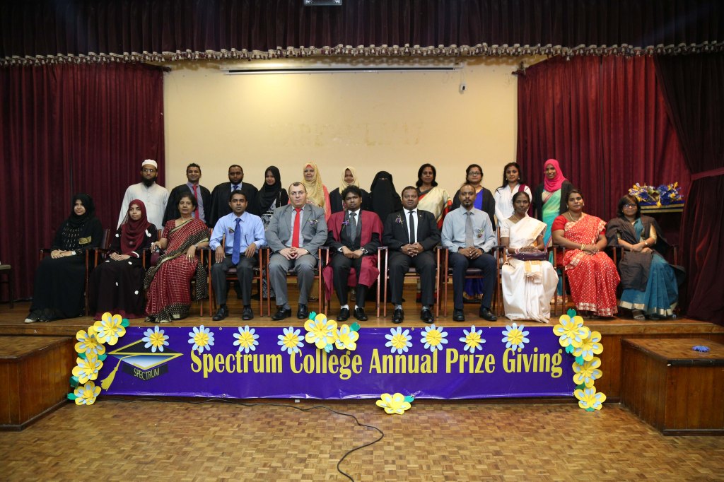 Spectrum College Boys Section in Mount Lavinia held it’s Annual Prize Giving for the Academic Year 2015/2016 on the 30 September 2016 at the College Auditorium. The Chief Guest at the event was Mrs. Khadeeja Najeeha (Minister Counsellor of the High Commission of Maldives in Sri Lanka). The occasion was honoured also by many distinguished guests who have immense experience in the field of education.